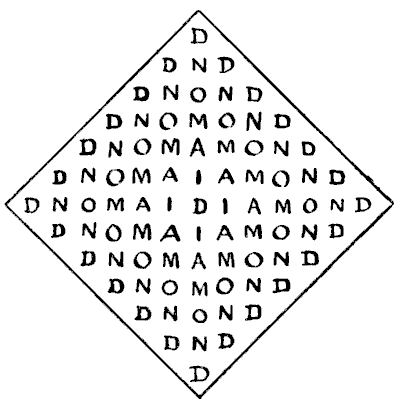 IN how many different ways may the word DIAMOND be read in the arrangement shown? You may start wherever you like at a D and go up or down, backwards or forwards, in and out, in any direction you like, so long as you always pass from one letter to another that adjoins it. How many ways are there?