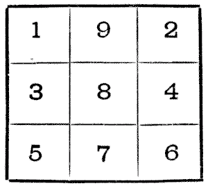 ניתן לראות בתרשים שסידרנו את תשע הספרות בריבוע כך שהמספר בשורה השנייה גדול פי שניים מהמספר בשורה הראשונה, והמספר בשורה התחתונה גדול פי שלושה מהמספר בשורה העליונה. ישנן שלוש דרכים נוספות לסדר את הספרות כך שיתקבל אותו פתרון. האם תוכלו למצוא אותן?