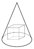 נתון חרוט (בעל ציר סימטריה במרכזו, המאונך לבסיסו) שגובהו 6 ובסיסו הוא עיגול בעל רדיוס `sqrt2` . בתוך החרוט חסומה קובייה – היא מונחת על בסיס החרוט וכל קדקודיה העליונים נוגעים בחרוט. מצאו את אורך הצלע של הקובייה. נמקו את תשובתכם.