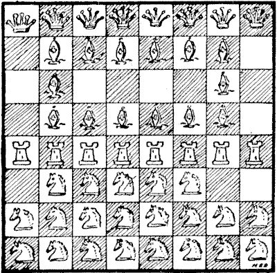 החידה היא לסדר מחדש את חמישים ואחד הכלים על לוח השחמט כך שאף מלכה לא תתקוף מלכה אחרת, אף צריח לא יתקוף צריח אחר, אף רץ לא יתקוף רץ אחר, ואף פרש לא יתקוף פרש אחר. אין להתחשב בהתערבותם של כלים מסוג אחר מאלה הנדונים - כלומר, שתי מלכות ייחשבו כתוקפות זו את זו, למרות שייתכן שיהיו, למשל, צריח, רץ ופרש ביניהן. וכך גם לגבי הצריחים והרצים. אין זה קשה להיפטר מכל סוג של כלי בנפרד; הקושי נובע כאשר צריך למצוא מקום לכל הסידורים על הלוח בו זמנית.