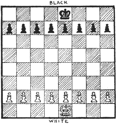 מההסדר הרגיל של הכלים כמו במשחק, מהו המספר הקטן ביותר האפשרי של מהלכים הדרושים כדי להגיע למצב הבא? המהלכים של שני הצדדים חייבים, כמובן, להתבצע בהתאם לחוקי המשחק, אם כי התוצאה בהכרח תהיה סוג מוזר מאוד של שחמט.