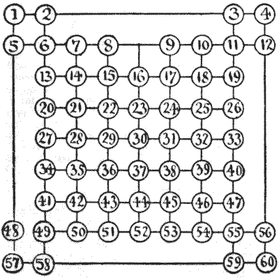 הנה עוד משחק חידה. שחקן אחד, המייצג את הגנרל הבריטי, מניח כלי בנקודה B, והשחקן השני, המייצג את האויב, מניח את הכלי שלו בנקודה E. הבריטי עושה את ההתקדמות הראשונה לאורך אחת הדרכים לעיר הבאה, ואז האויב עובר לאחת הערים הקרובות אליו, וכן הלאה בתורות, עד שהגנרל הבריטי מגיע לאותה עיר כמו האויב ולוכד אותו. למרות שכל אחד חייב תמיד לנוע לאורך דרך לעיר הבאה בלבד, והשחקן השני רשאי לעשות כמיטב יכולתו כדי להימנע מלכידה, הגנרל הבריטי (כפי שאנו אמורים להניח, מהאנלוגיה של החיים האמיתיים) חייב לנצח ללא טעות. אבל איך? זאת השאלה.