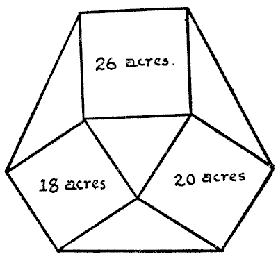 כעת, פיסת הקרקע המשולשת הקטנה התחומה על ידי שלוש האחוזות הריבועיות לא הוצעה למכירה, ומסיבה לא מיוחדת, התעוררתי לסקרנות לגבי שטח החלקה הזו. כמה אקרים היא הכילה?