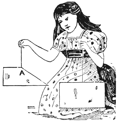 זוהי חידה מאת פאפוס, שחי באלכסנדריה בערך בסוף המאה השלישית. זהו המשפט החמישי בספר השמיני של אוספים מתמטיים שלו. אני מציג אותה בצורה שהצגתי אותה לפני כמה שנים תחת הכותרת "החידה של פאפוס", רק כדי לראות כמה קוראים יגלו שהיא מאת פאפוס עצמו. "לאבא של העלמה הקטנה יש שני פיסות קרטון מלבניות בגדלים שונים, והוא גזר פיסה משולשת מאחת מהן, כך שכאשר היא תלויה בחוט מהנקודה A היא תלויה כשהצד הארוך אופקי לחלוטין, כפי שמוצג באיור. הוא הדהים את הילדה בכך שביקש ממנה למצוא את הנקודה A על הכרטיס השני, כדי להפיק תוצאה דומה כאשר הוא נחתך ותלוי בחוט." כמובן, אסור למצוא את הנקודה על ידי גזירות ניסיון. נקודה מוזרה ויפה מעורבת בהצגת החידה הזו. האם הקורא יכול לגלות אותה?