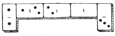 הנה חידה קטנה חדשה שאינה קשה, אך כנראה תמצא חן בעיני הקוראים שלי. ניתן לראות שחמש אבני הדומינו מסודרות ברצף נכון (כלומר, עם `1` כנגד `1, 2` כנגד `2`, וכן הלאה), כך שהמספר הכולל של הנקודות בשתי אבני הדומינו הקיצוניות הוא חמש, וסכום הנקודות בשלוש אבני הדומינו באמצע הוא גם חמש. ישנן רק שלוש סידורים אחרים שנותנים חמש עבור הסכומים. הם: —